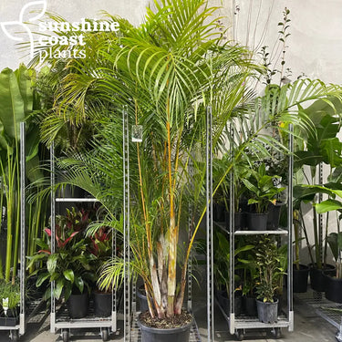 Dypsis lutescens, commonly known as the Golden Cane Palm, is a popular tropical palm known for its graceful, arching fronds and golden-yellow stems. Its dense, clumping growth and bright, feathery foliage make it a favorite choice for creating privacy screens, lush garden borders, or as a beautiful indoor plant. Growing to a height of 6–8 meters outdoors, the Golden Cane Palm brings a soft, tropical feel to both outdoor landscapes and indoor spaces.