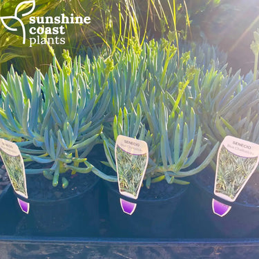 Senecio serpens, commonly known as Blue Chalksticks, is a low-growing, evergreen succulent admired for its compact, trailing habit and striking powdery blue, finger-like foliage. This drought-tolerant plant is ideal for creating texture and colour contrast in rock gardens, borders, or containers. Growing to a height of 15–30 cm, it forms a dense, spreading mat, adding a modern and sculptural aesthetic to any landscape.