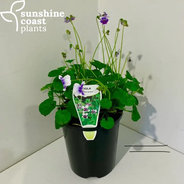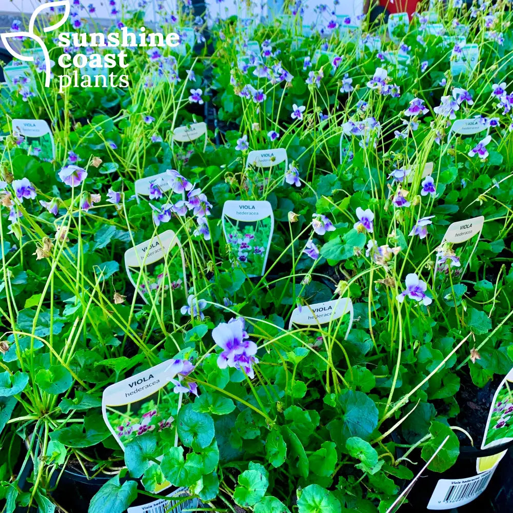 Viola hederacea, commonly known as Native Violet, is a charming, low-growing, evergreen ground cover prized for its delicate heart-shaped leaves and small, violet-purple and white flowers that bloom year-round, peaking in spring and summer. This hardy and versatile plant is perfect for creating lush, green carpets, filling gaps between pavers, or softening edges in garden beds. Growing to a height of 5–10 cm, it is ideal for adding a touch of elegance and color to shaded areas.