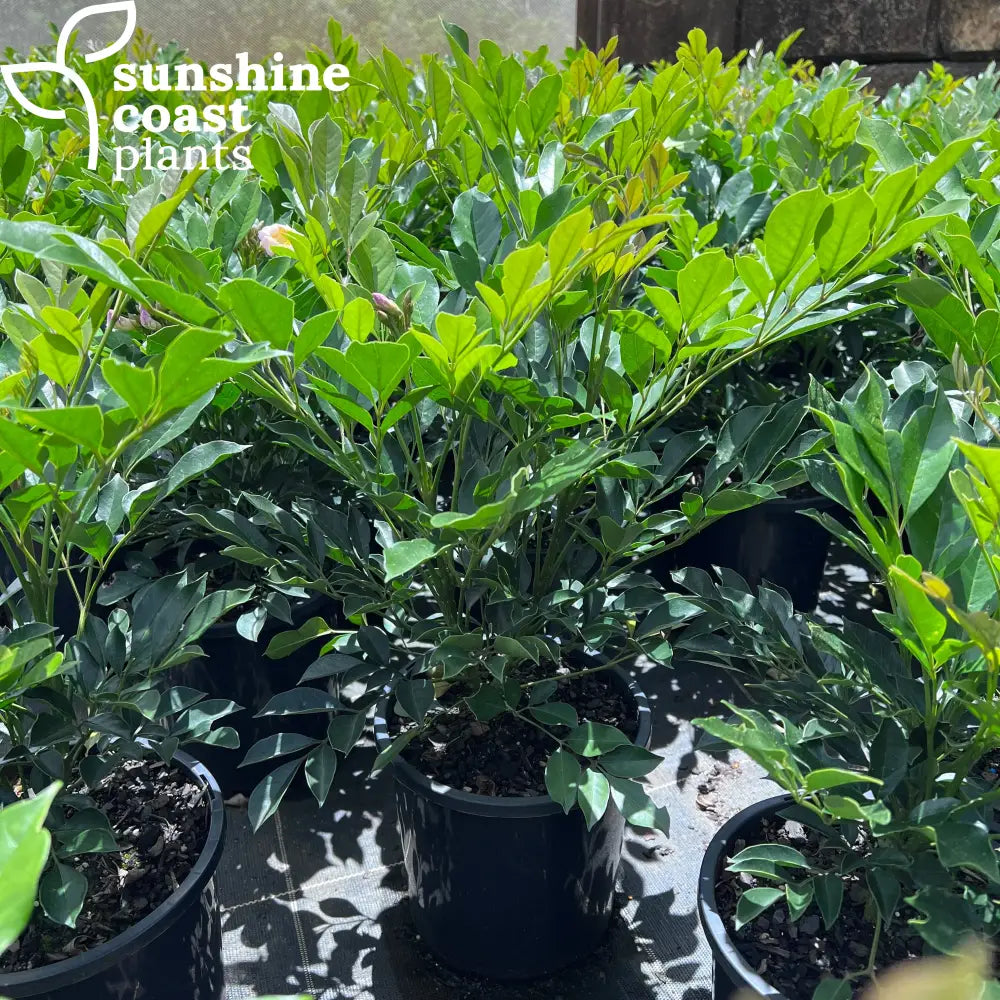 Radermachera 'Summerscent,' is a versatile evergreen shrub or small tree admired for its lush, glossy green foliage and highly fragrant, trumpet-shaped pink flowers that bloom throughout the warmer months. This fast-growing, compact plant is perfect for adding colour and fragrance to gardens, as a feature tree, or for screening and hedging. Growing to a height of 3–5 meters, it is ideal for both formal and informal garden settings.