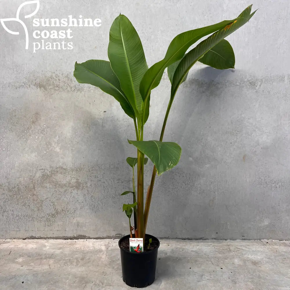 Heliconia 'Black Cherry' is a striking tropical perennial prized for its bold, dark burgundy bracts with cherry-red tones that create an exotic and dramatic display. The tall, upright flower spikes and lush green foliage bring an architectural element and a splash of intense colour to garden landscapes from spring through autumn. Growing to a height of 3.5-5 meters, 'Black Cherry' is ideal as a feature plant in tropical gardens, shaded borders, or as a standout in large containers.