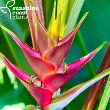 Heliconia 'Prince of Darkness' is a striking tropical perennial known for its dramatic, deep burgundy to pink and yellow bracts, contrasted by vibrant green foliage. These bold, bracts create a unique, exotic display in gardens, adding depth and intensity from late spring through autumn. Growing to a height of 4–5 meters, 'Prince of Darkness' is ideal for creating eye-catching focal points in tropical garden beds, shaded borders, or large containers.