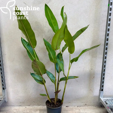 Heliconia rostrata, commonly known as Lobster Claw Heliconia, is a breathtaking tropical perennial celebrated for its unique, pendulous bracts in vibrant shades of red and yellow with green tips. These long, cascading bracts resemble lobster claws, adding an exotic and dramatic look to garden landscapes from late spring through autumn. Growing to a height of 1.5–2.5 meters, Heliconia rostrata is perfect for adding colour, height, and a lush tropical vibe to shaded borders, garden beds, or as a stunning focal point in large containers.