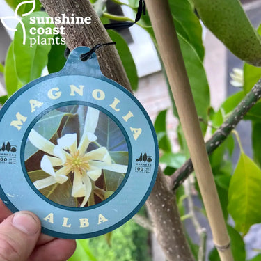 Grafted Magnolia × alba thrives in full sun to part shade and performs best in well-drained, fertile soil rich in organic matter. It prefers warm, humid conditions and is best suited to subtropical and tropical climates. In cooler zones, it will require a sheltered position and protection from frost and cold winds.