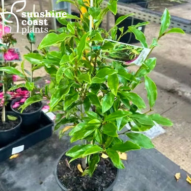 Michelia figo, commonly known as the Port Wine Magnolia, is a delightful evergreen shrub valued for its glossy, dark green foliage and highly fragrant, small, cup-shaped flowers that range in colour from creamy yellow to deep purple. Blooming from spring to summer, the flowers release a sweet, port wine-like scent, making it a favorite for sensory gardens. Growing to a height of 2–4 meters, this compact shrub is perfect for hedging, screening, or as a feature plant in garden beds or containers.