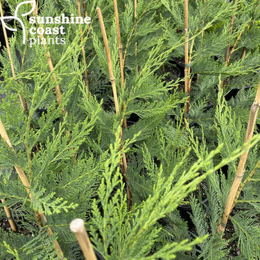 Cupressus 'Leighton Green,' commonly known as Leighton Green Cypress, is a fast-growing, evergreen conifer with dense, dark green foliage that maintains its colour year-round. This cypress is ideal for creating privacy screens, windbreaks, or as a formal hedge. Growing to a mature height of 15–20 metres, 'Leighton Green' is a popular choice for larger landscapes and properties that require effective screening or wind protection.