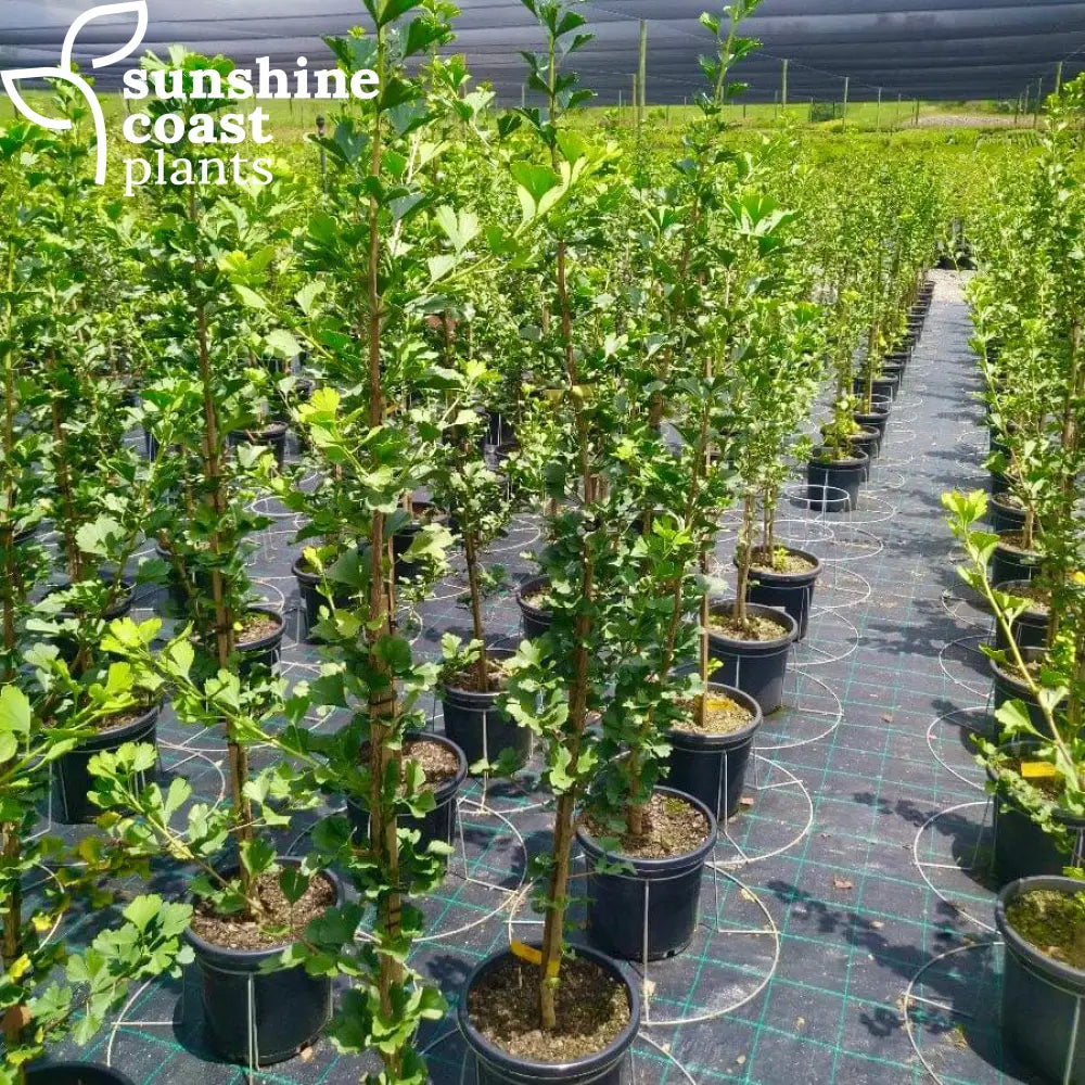 Ginkgo biloba 'Lemon Lime Spire,' commonly known as Lemon Lime Spire Ginkgo, is a unique, columnar tree known for its striking, fan-shaped leaves that emerge a soft green, turning vibrant yellow in autumn. Its compact, narrow growth makes it ideal for smaller landscapes or as a vertical accent in garden beds and urban spaces. Growing to a height of 4–6 meters, this Ginkgo adds elegance, texture, and seasonal colour to any setting.