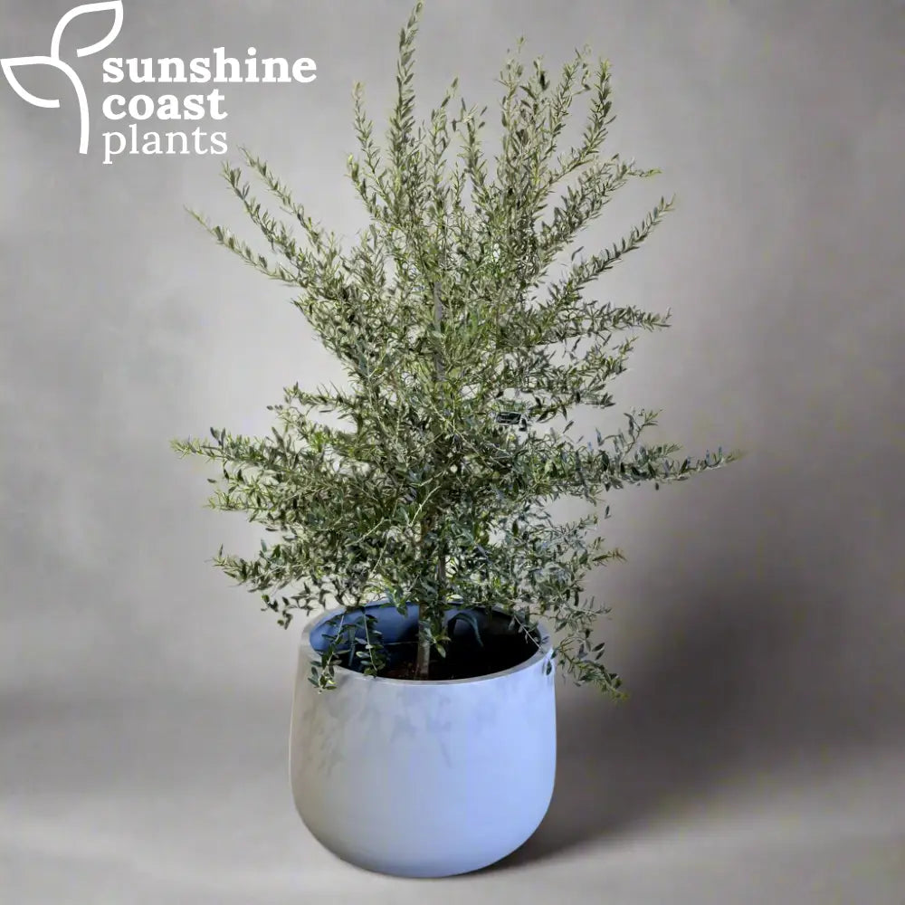 Olea europaea ‘Manzanillo’ is a highly regarded evergreen olive tree known for its attractive silver-green foliage, gnarled trunk character as it ages, and high-quality fruit production. This Spanish variety is widely cultivated for its plump, juicy olives used for both oil and table consumption. With its dense crown and ornamental value, ‘Manzanillo’ is equally suited as a feature tree, hedge, or productive element in edible and Mediterranean-style gardens. It typically grows to 4–6 metres in height.