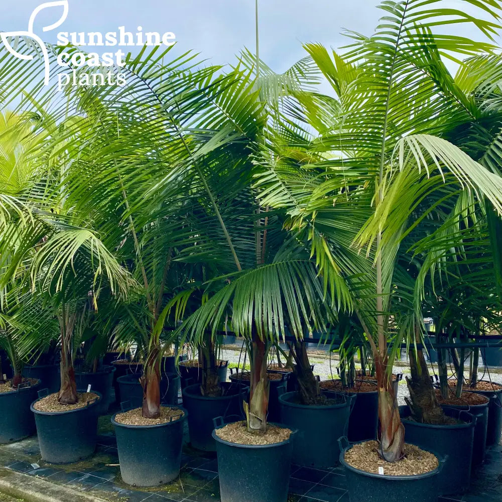 Dypsis leptocheilos, commonly known as the Teddy Bear Palm, is an eye-catching tropical palm known for its distinctive, copper-coloured, fuzzy crown shaft that resembles a teddy bear’s fur. This beautiful palm also features slender, smooth, gray-green trunks and arching, feathery fronds, making it a striking addition to tropical landscapes. Growing to a height of 6–10 meters, the Teddy Bear Palm is ideal as a feature plant or focal point in tropical and subtropical gardens.