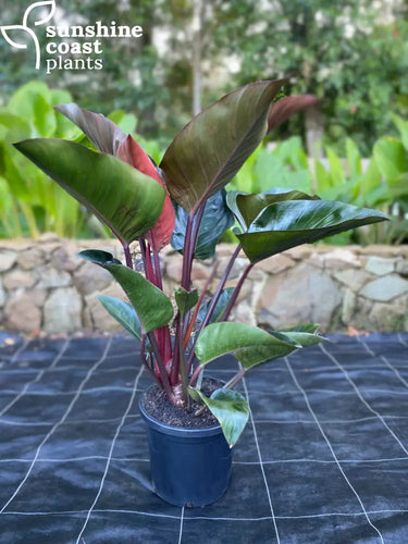 Philodendron 'Rojo Congo' is a striking evergreen tropical plant known for its large, glossy, deep burgundy-green leaves that create a bold and elegant statement. The leaves emerge in a rich burgundy hue and mature to a dark green, adding depth and drama to indoor or outdoor spaces. With its compact, upright growth habit, 'Rojo Congo' is ideal as a statement plant for modern interiors or as a feature in tropical garden beds. Growing to a height of 1–1.5 meters, it brings a lush, exotic feel to any setting.