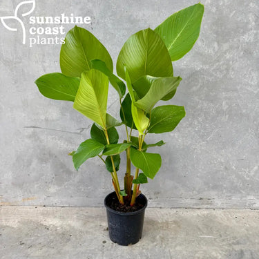 Calathea lutea, commonly known as the Cigar Plant or Cuban Cigar Plant, is a large tropical perennial with tall, upright leaves that resemble banana leaves, displaying a lush, architectural form. Its striking silver-green foliage with subtle, dark green veins creates a bold, tropical statement in shaded garden beds, borders, and containers. Growing up to a height of 2–3 meters, Calathea lutea is perfect for adding height, texture, and a lush, jungle-like feel to gardens.