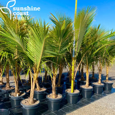 Cocos nucifera 'Malay Dwarf,' commonly known as the Dwarf Coconut Palm, is a compact, tropical palm known for its iconic, graceful fronds and short stature, making it perfect for smaller landscapes or as a container specimen. This attractive palm produces small coconuts and has a shorter trunk than typical coconut palms, making it more accessible and easier to maintain. Growing to a height of 6–10 meters, the Malay Dwarf is ideal for coastal gardens, poolside plantings, and tropical landscapes.