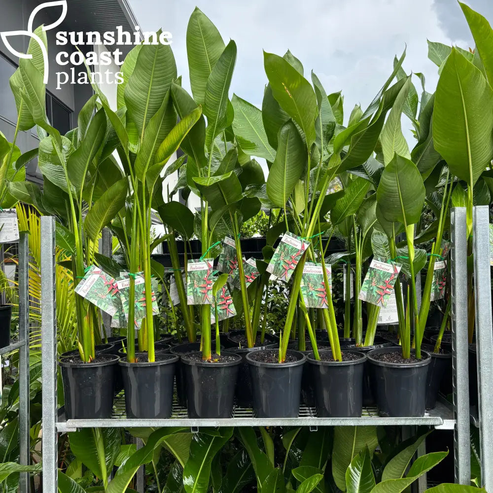 Heliconia rauliniana is a striking tropical perennial known for its large, upright, red and yellow bracts that resemble vibrant lobster claws. This variety is tight clumping and good to use in narrower spaces. Paired with lush green foliage, these bold bracts create an exotic and dramatic look in garden landscapes from spring through autumn. Growing to a height of 4 meters, Heliconia rauliniana is perfect for adding height, colour, and a tropical flair to garden beds, borders, or as a feature plant in expansive landscapes.