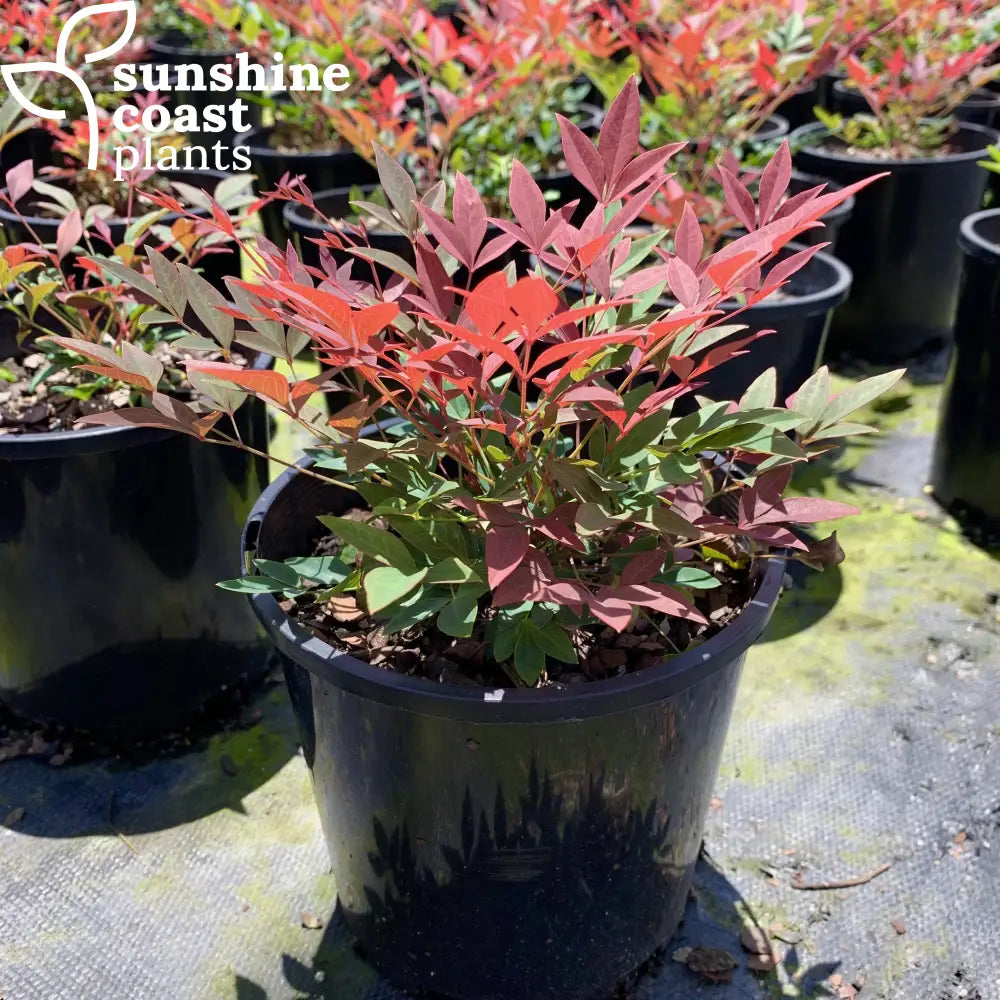 Nandina domestica Obsession™, commonly known as Obsession™ Sacred Bamboo, is a compact, evergreen shrub prized for its vibrant red new foliage that transitions to a rich green as it matures. Unlike other Nandina varieties, Obsession™ retains its brilliant red tones throughout the growing season, offering year-round colour and interest. Growing to a height of 60–80 cm, it is ideal for borders, low hedges, ground cover, or as a feature plant in garden beds or containers. **Minimum purchase of 6 x 140mm pots or 3 x 200mm pots apply for this product**